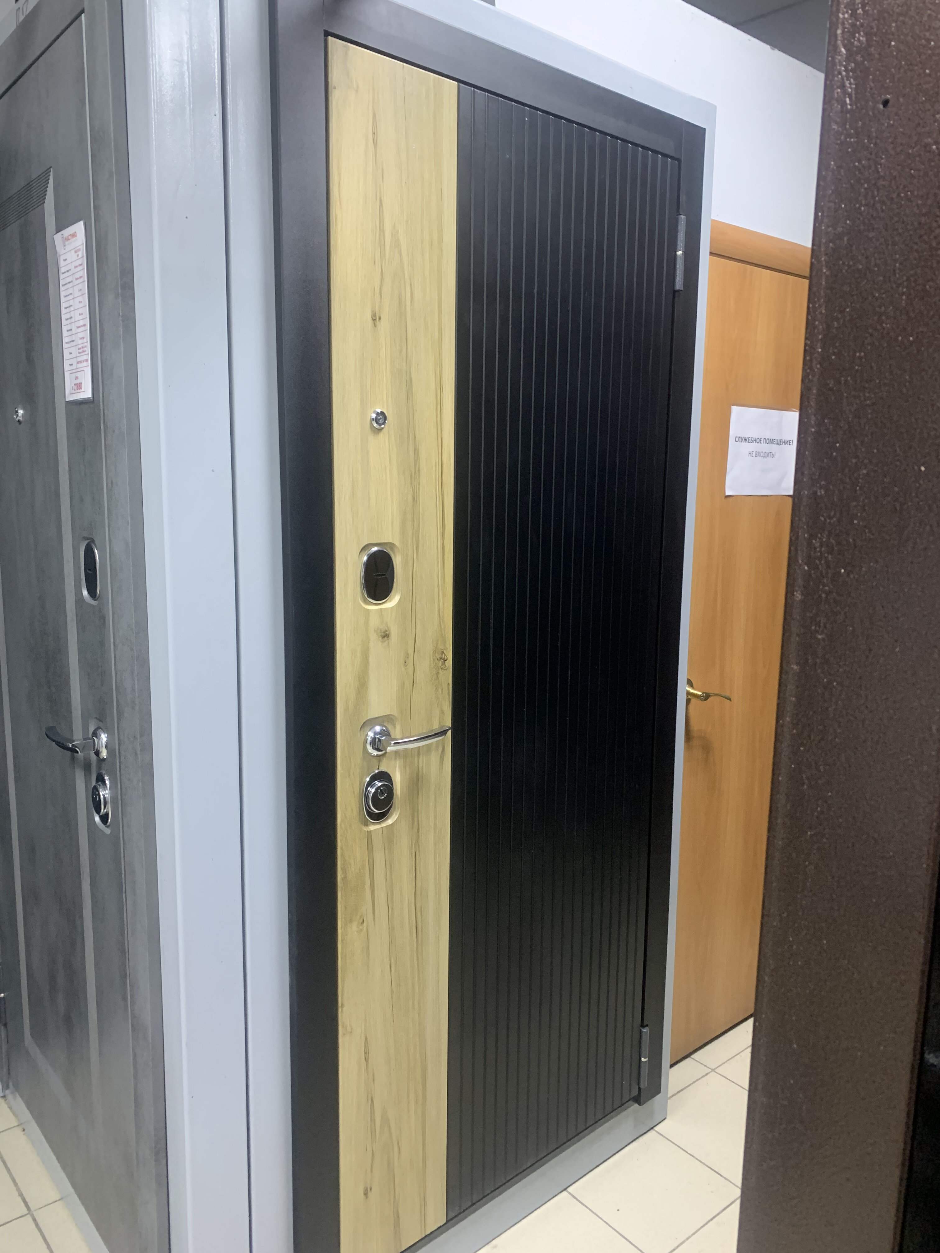 Дверь входная TRUST ECO-401/161 | Чёрный матовый/Дуб галифакс медовый \ Дуб галифакс медовый